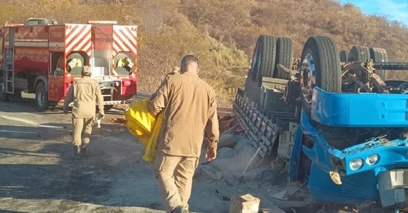 Pai e filho morrem após caminhão tombar, na Serra de Teixeira